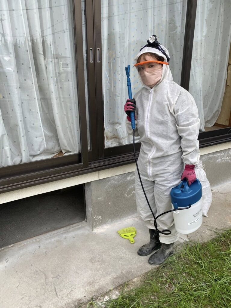 この日はメンバー5名で床下の泥出しと消毒を行いました。