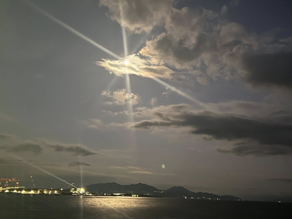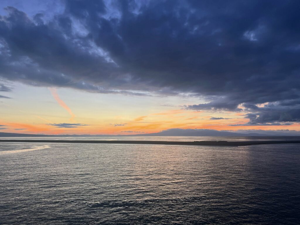 作業後はフェリーに間に合い、夕陽を見ながら帰路へ。