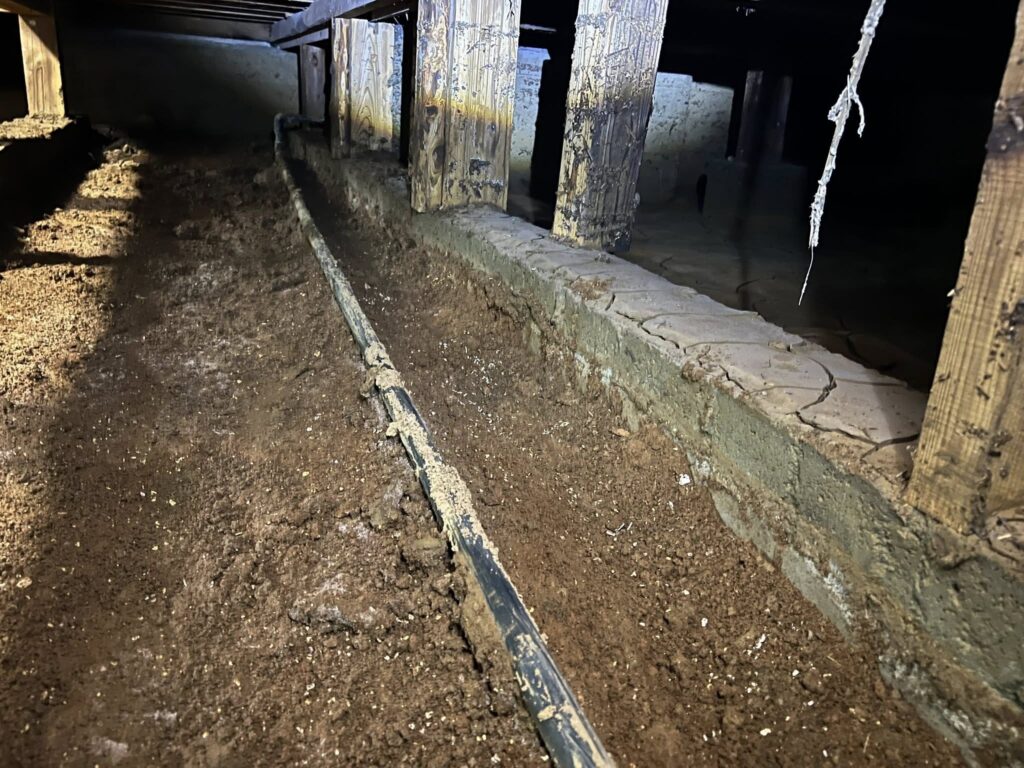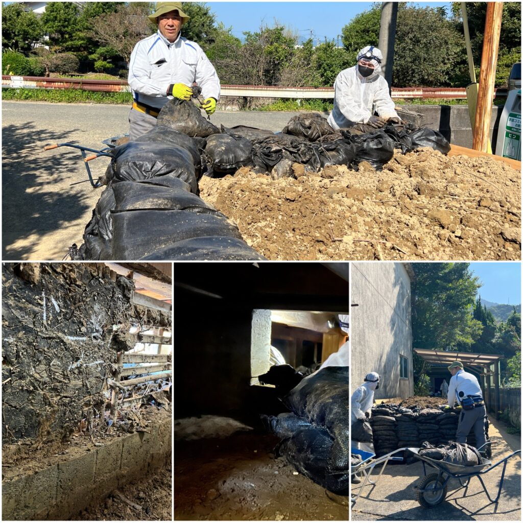 カビ臭のする畳の下から土砂を除去し、全室の消毒を実施。