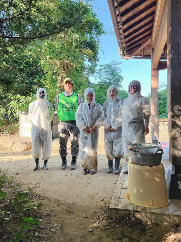メンバー延べ8名で、2件のお宅の床下土砂撤去・消毒作業を行いました。