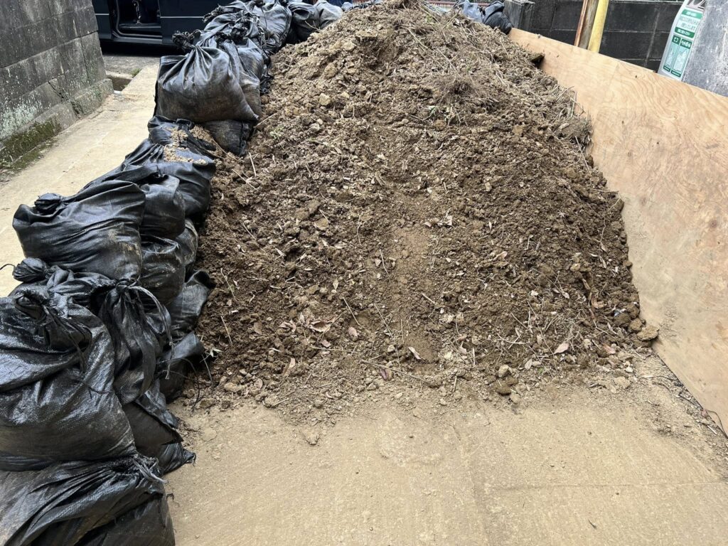 2件目のお庭にはまだ多くの土砂が残っており、継続して対応させていただいています。